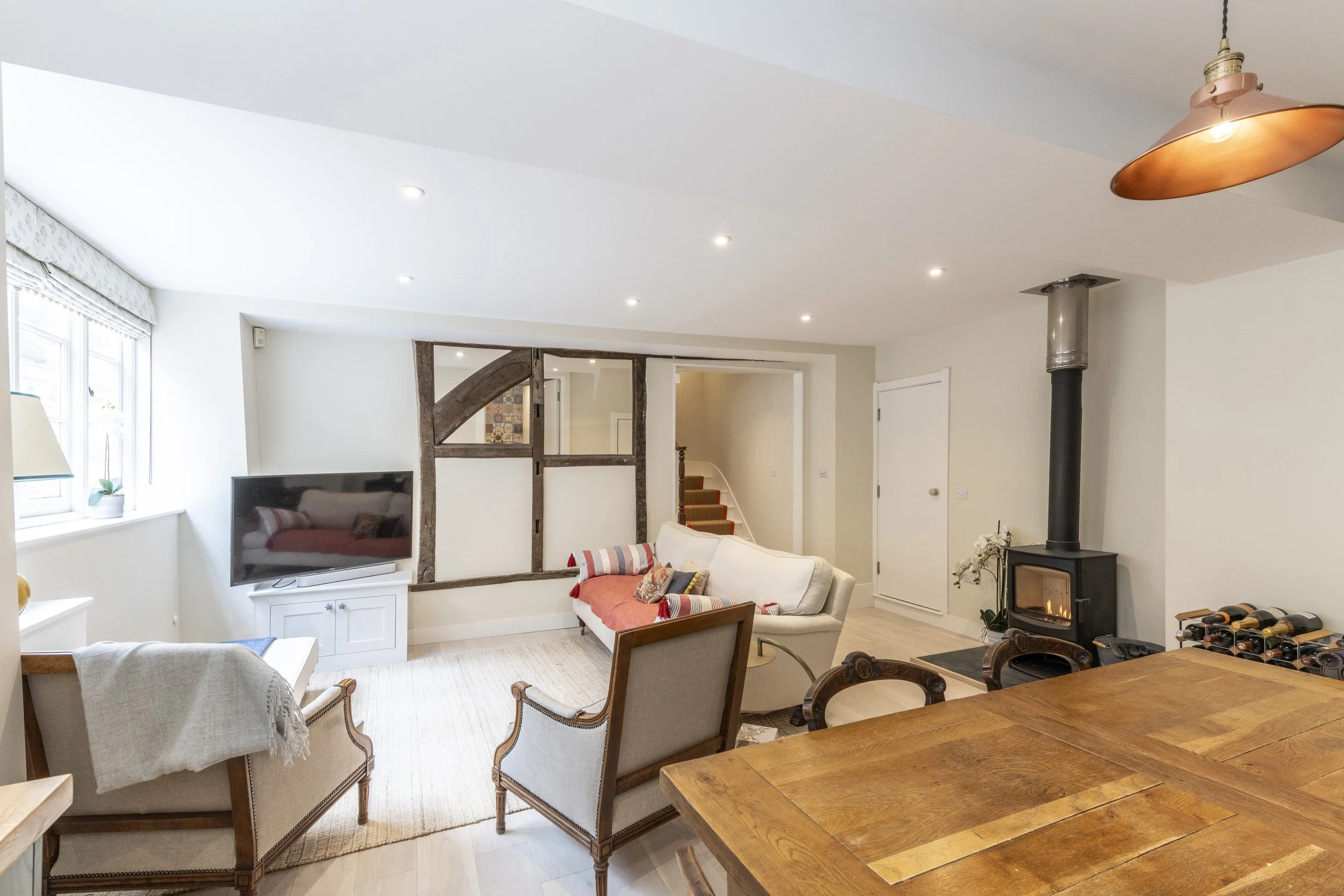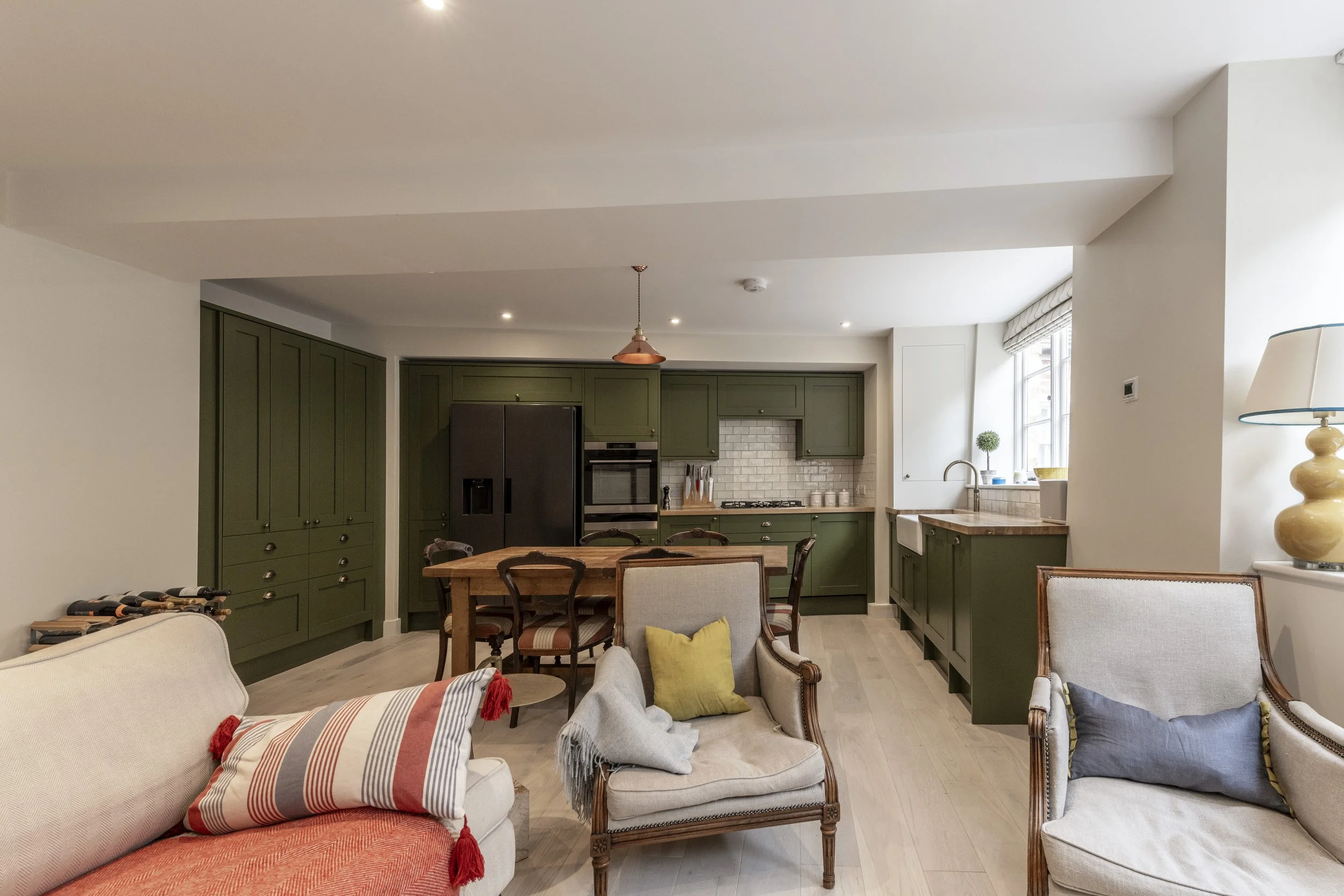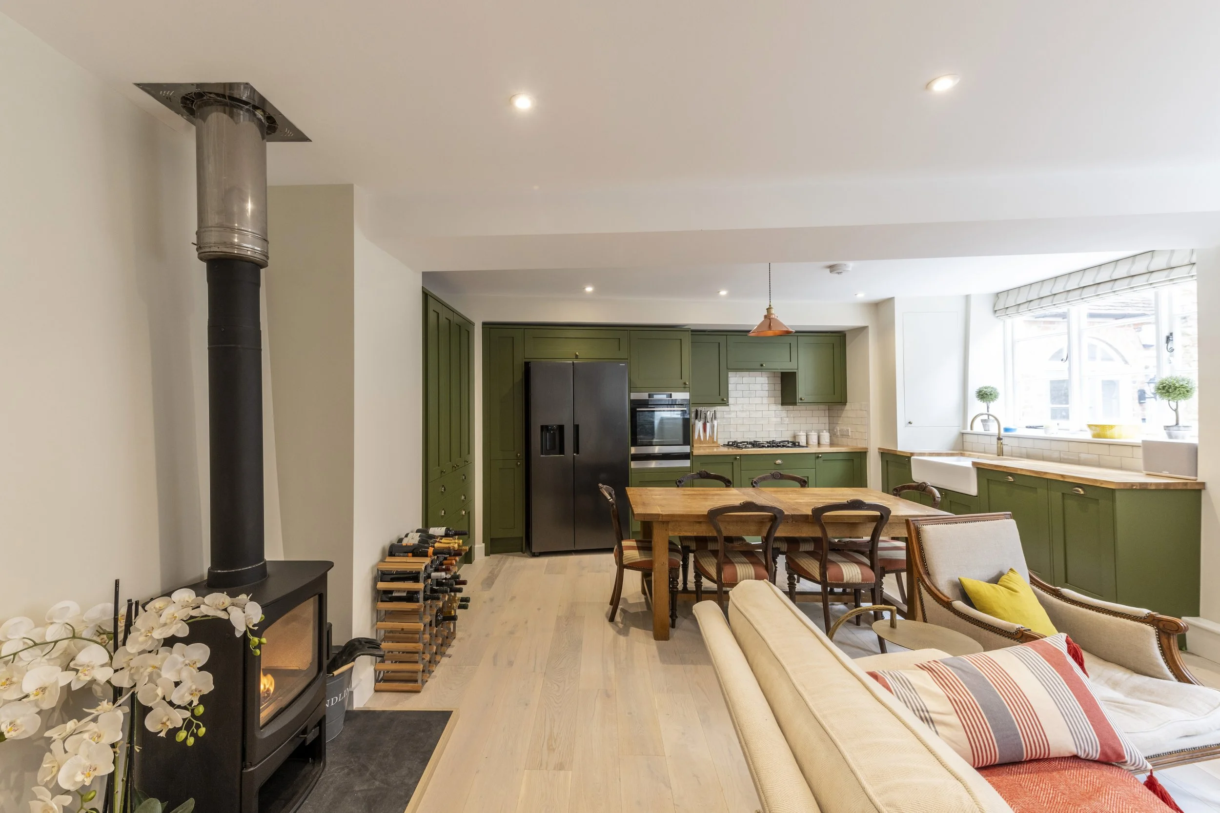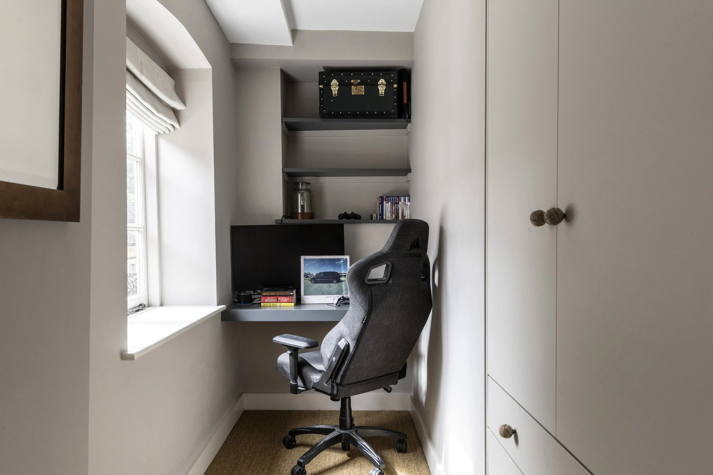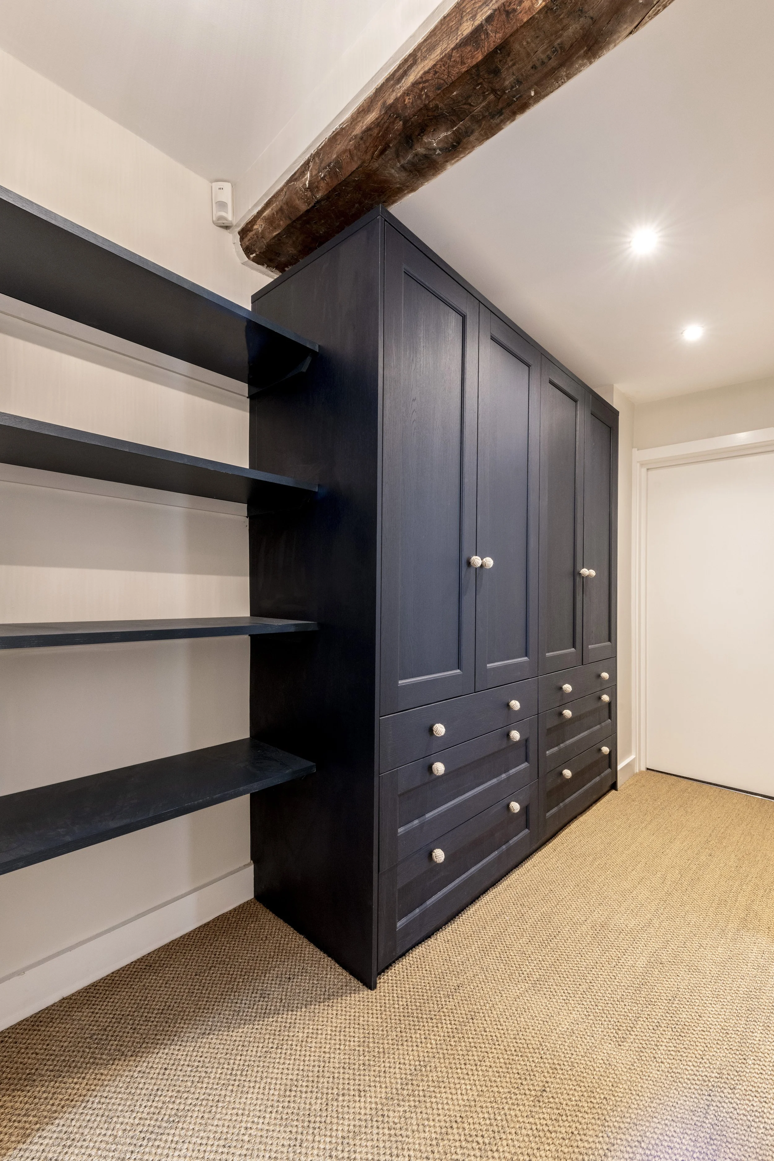 To enhance the interior space, 2 walls have been moved. Adaptations to the floorplan have allowed for a study, bedroom and bathroom on the first floor, maximising the usability of the space. Despite the challenging layout of this apartment, RBW have made massive improvements to the home, fitting a new kitchen with a pantry and underfloor heating, 2 full bathroom renovations including improvements to drainage, and bespoke cabinetry throughout.