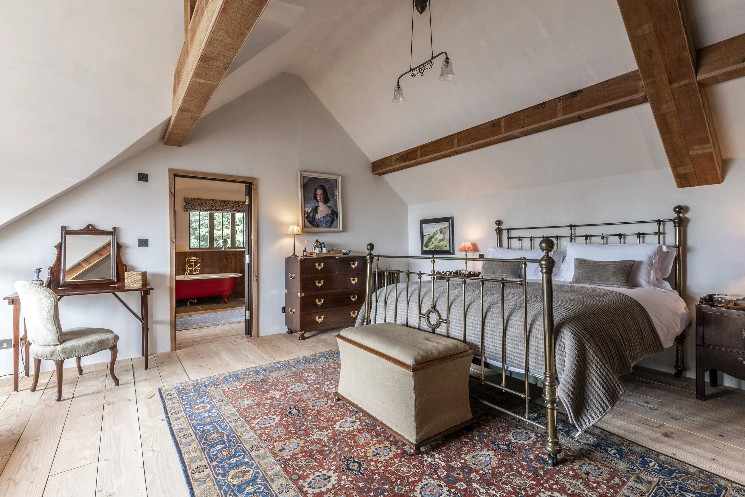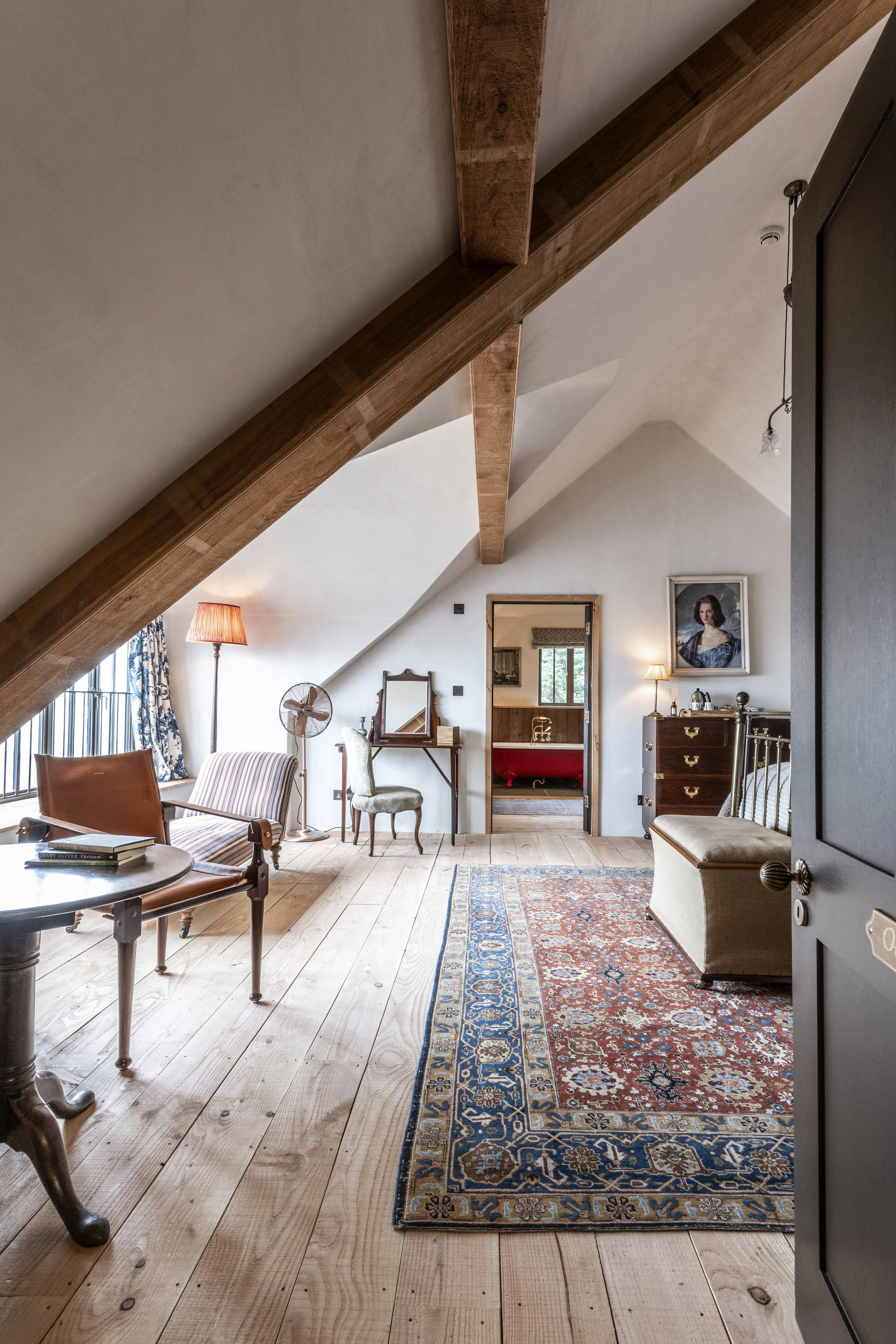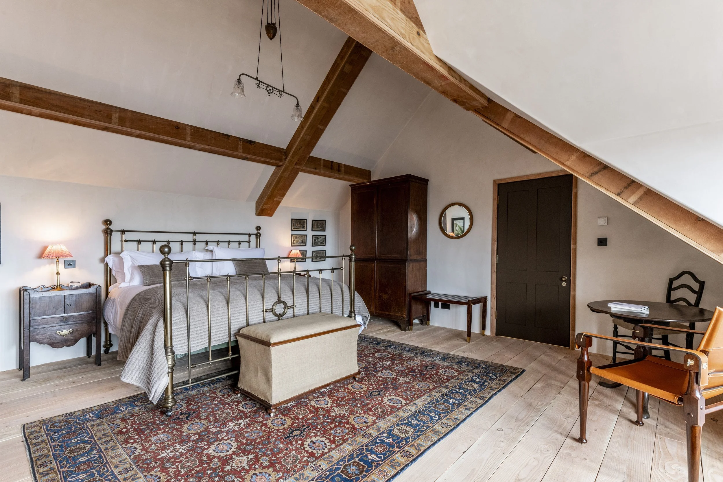 The luxury bathrooms in each suite contain freestanding baths, showers, underfloor heating, toilet rooms and double sinks, creating spa-like spaces for guests to relax in. Every detail throughout the hayloft has been carefully considered, from the Corston light fittings to the handmade Douglas Fir bespoke staircase, taking guests into a grand hall. The bespoke aluminium windows are sympathetic to the existing windows on surrounding buildings, with RBW working with Salisbury Glass.