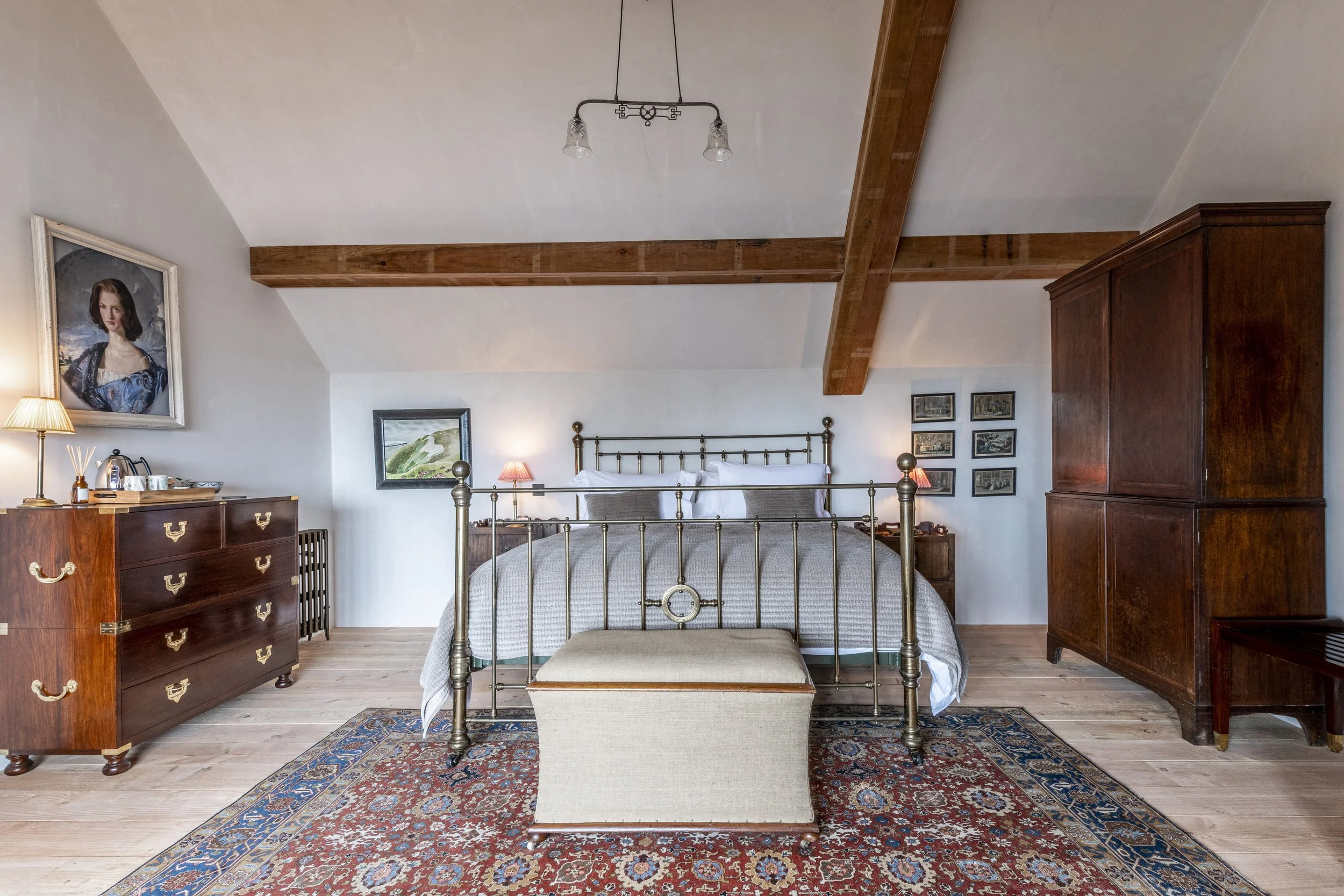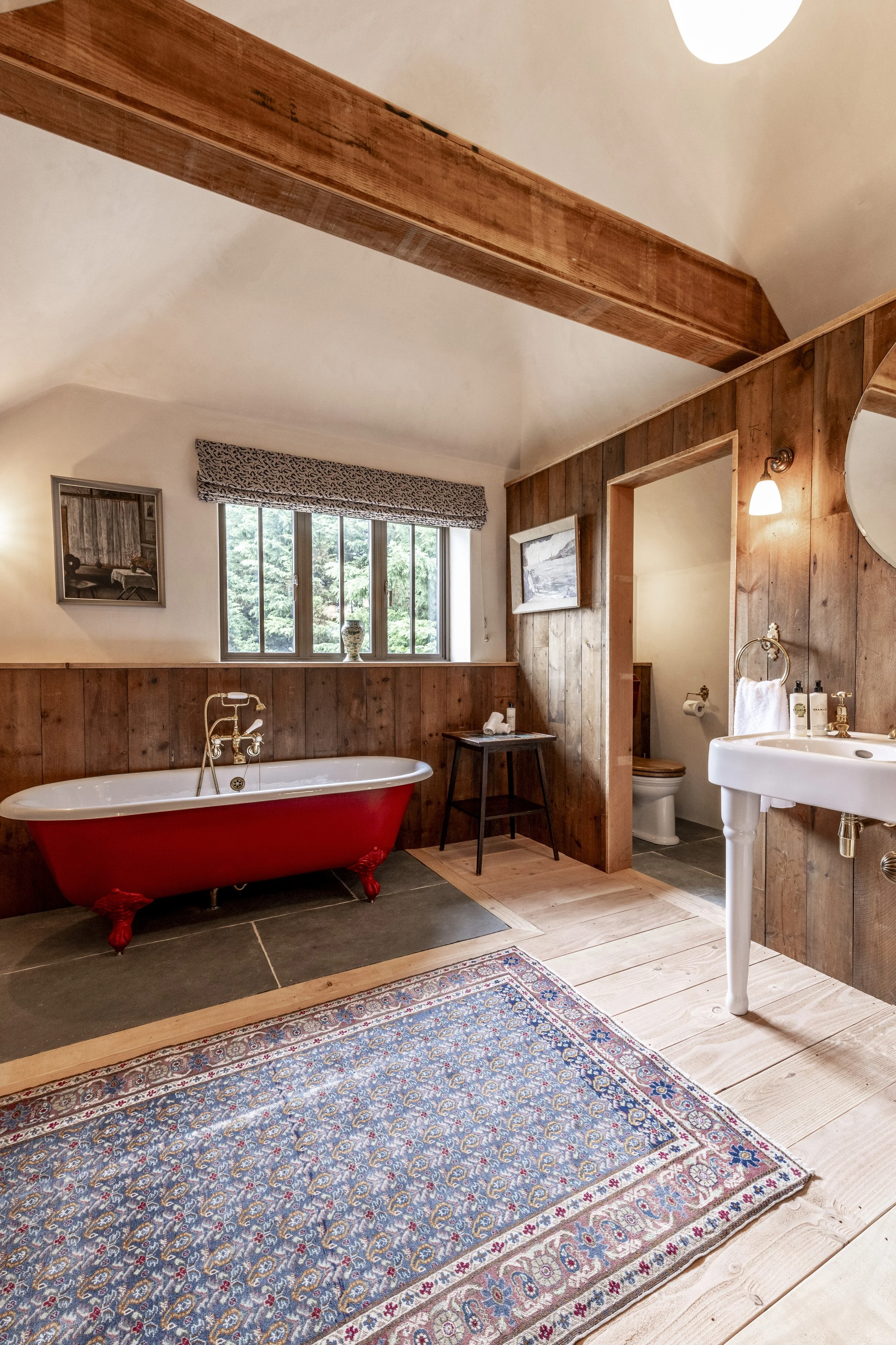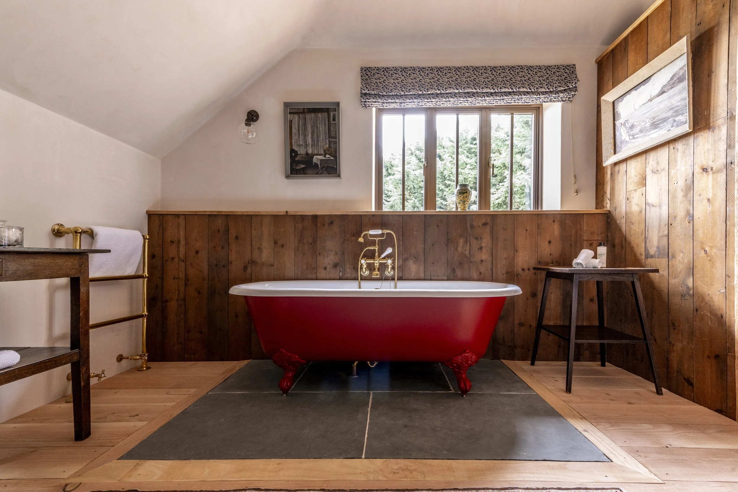 The luxury bathrooms in each suite contain freestanding baths, showers, underfloor heating, toilet rooms and double sinks, creating spa-like spaces for guests to relax in. Every detail throughout the hayloft has been carefully considered, from the Corston light fittings to the handmade Douglas Fir bespoke staircase, taking guests into a grand hall. The bespoke aluminium windows are sympathetic to the existing windows on surrounding buildings, with RBW working with Salisbury Glass.