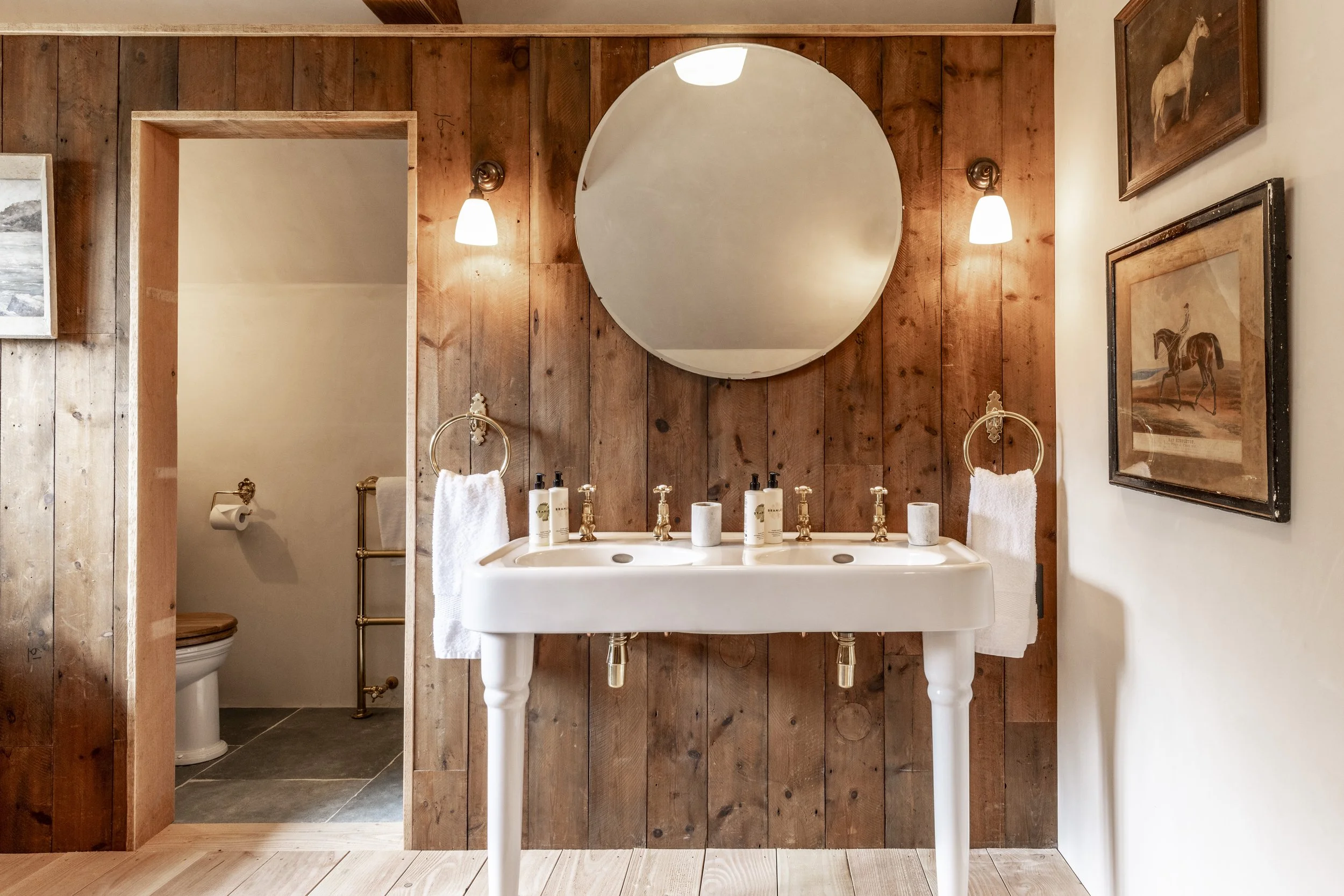 Phase 1 works were based around the conversion of the hayloft, in a rustic barn. With an empty space to work with, a new layout was developed to include 2 luxury suites, each with a bedroom, living space, and full bathroom. Raw Douglas Fir flooring and wall details were fitted throughout, with reclaimed timber wall panelling adding to the warm, country charm.