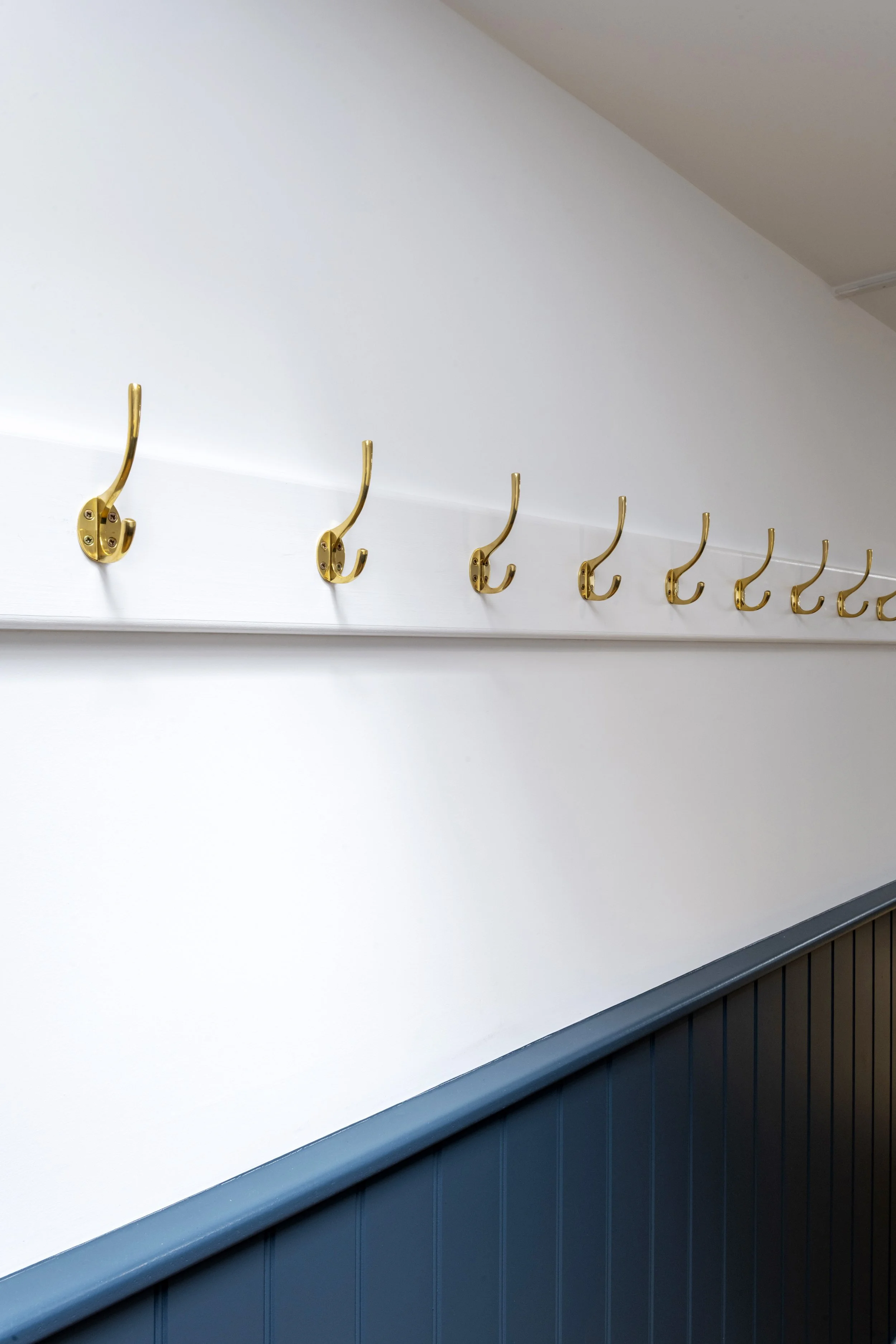 We handmade all the shelves and made the brackets to match the shape of the shelving in the bar and restaurant area. We also used the same style of brackets on the benches. The cornice was fitted to give a handmade, bespoke finish.